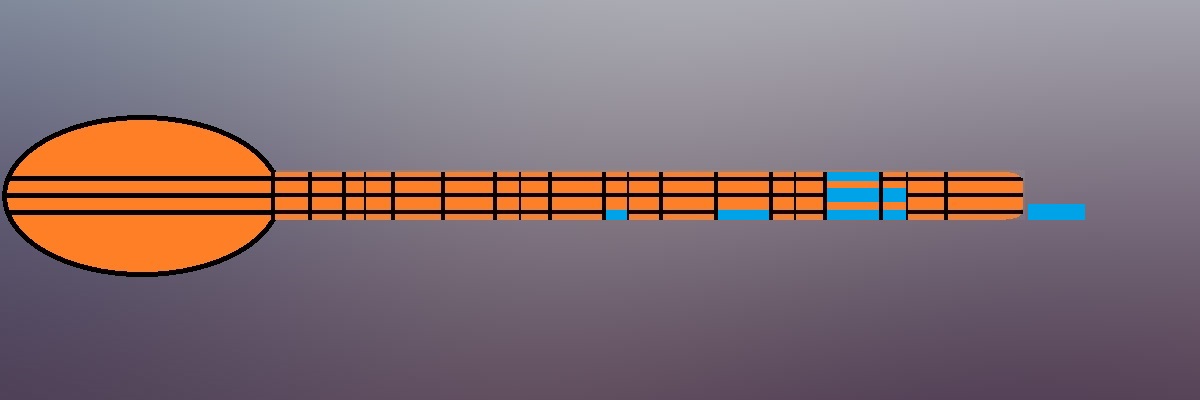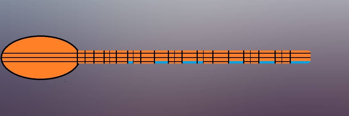 شكل الابعاد على البزق ذو الزند الطويل (ساز)